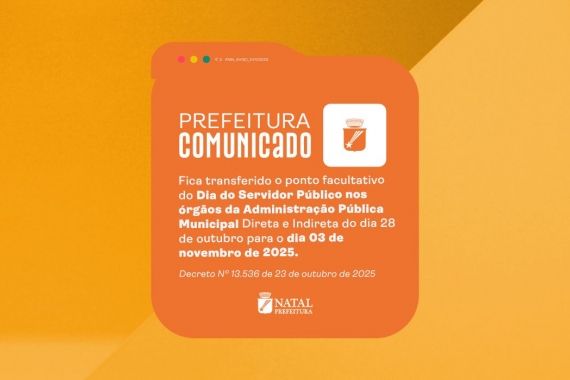A Prefeitura do Natal, por meio do Decreto n.º 13.297, alterou a data do feriado do Dia do Servidor Público. A data, originalmente celebrada nesta terça-feira (28), foi transferida para 3 de novembro. O decreto, assinado pelo prefeito Paulinho Freire, foi publicado no Diário Oficial do Município desta quinta-feira (24).